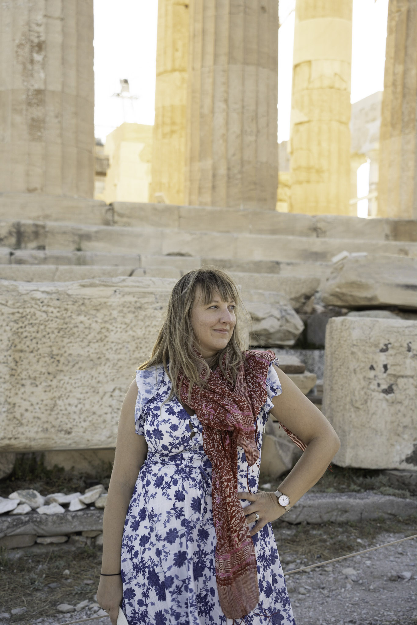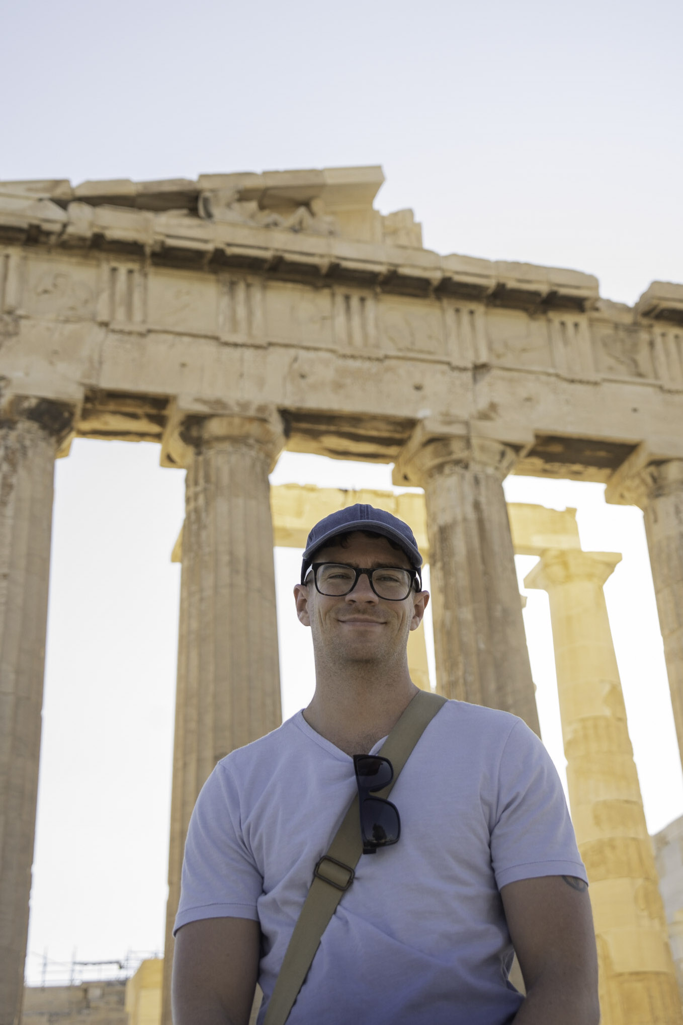 We were among hundreds of people viewing the site. If you take your time looking (and trying to get good shots with as few people in the background as possible) you can easily spend two hours up there, as did we. It was so interesting to see these ancient stones up close in real life. I’ve seen the Parthenon in TV and movies countless times, but to be there in real life was something special. All together, we went to the museum at 4pm, then made it to the top of the Acropolis around 530pm, and left around 730pm to go find dinner in Plaka. Because the sun stays up for so long in the summer in Europe, even at 8pm, the sun was still high in the sky and made me feel like it was only 3pm!