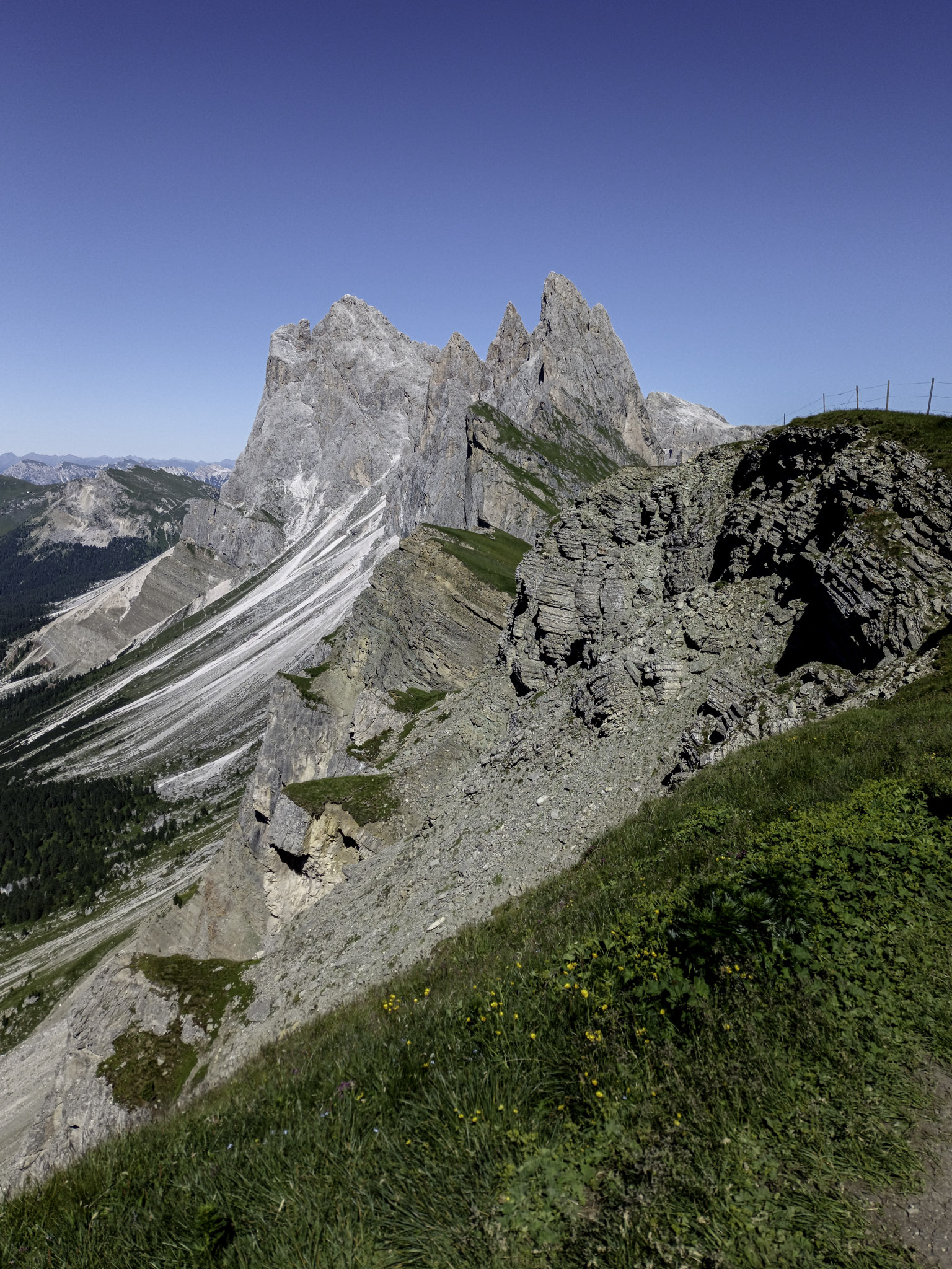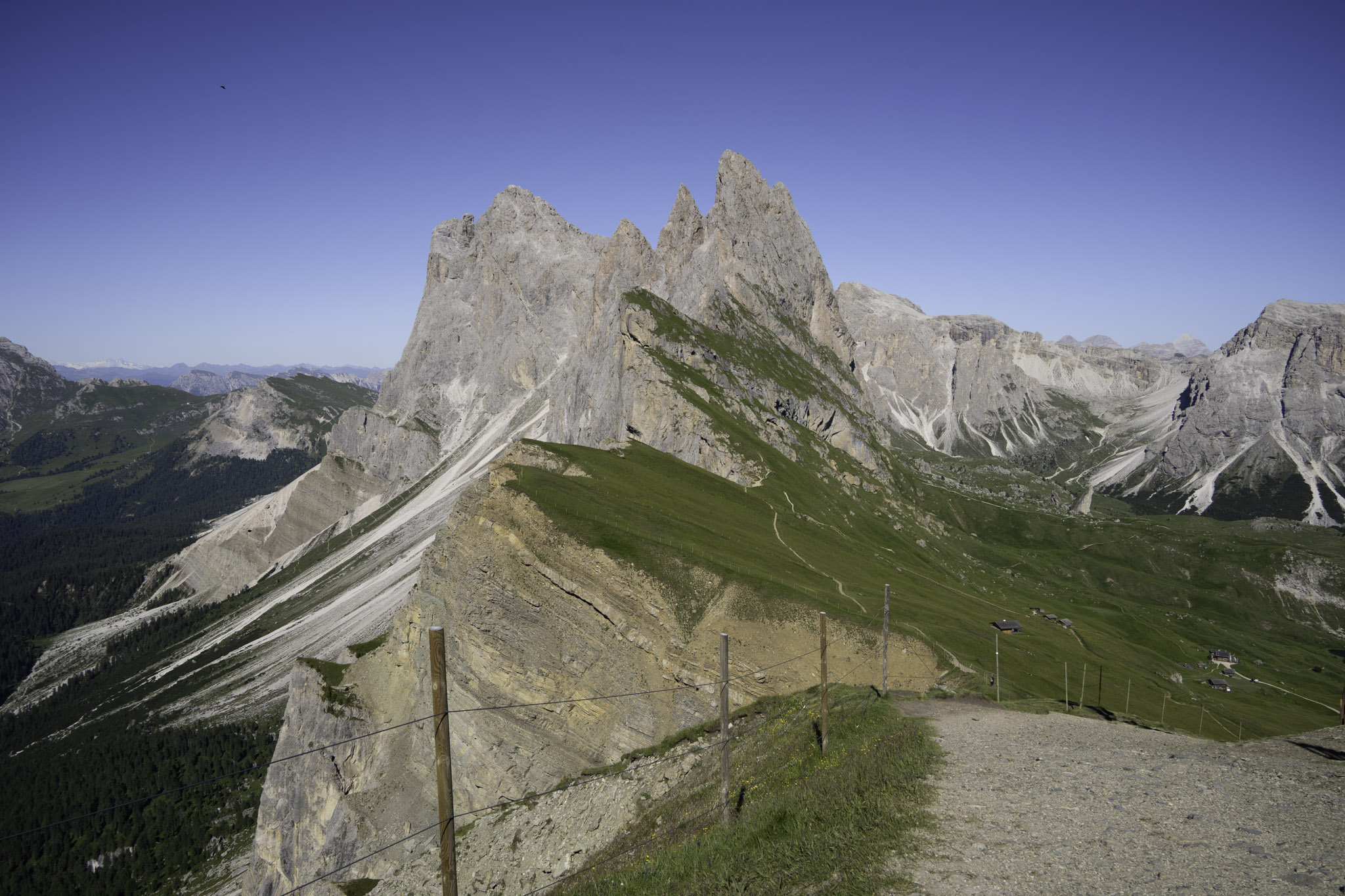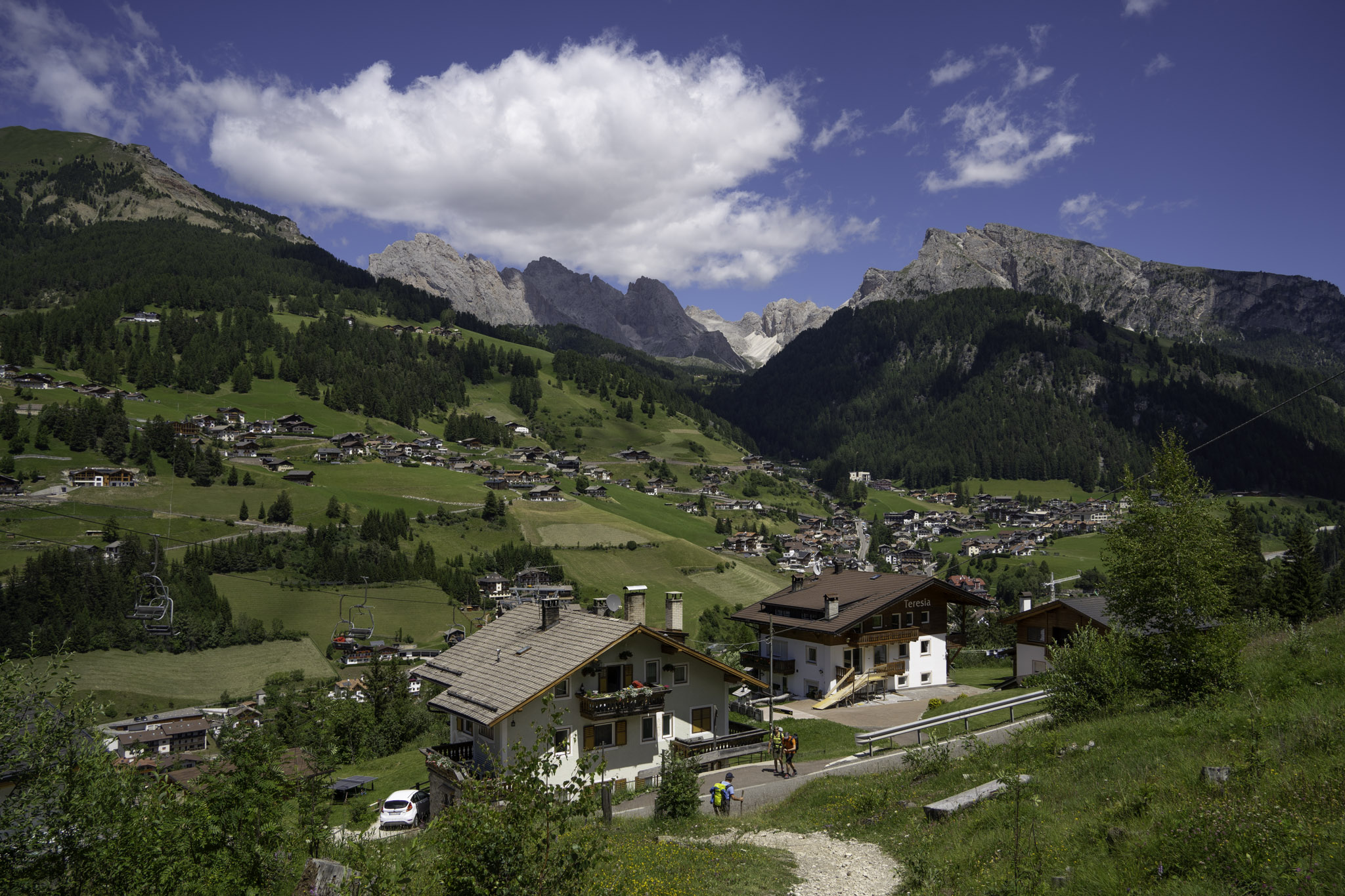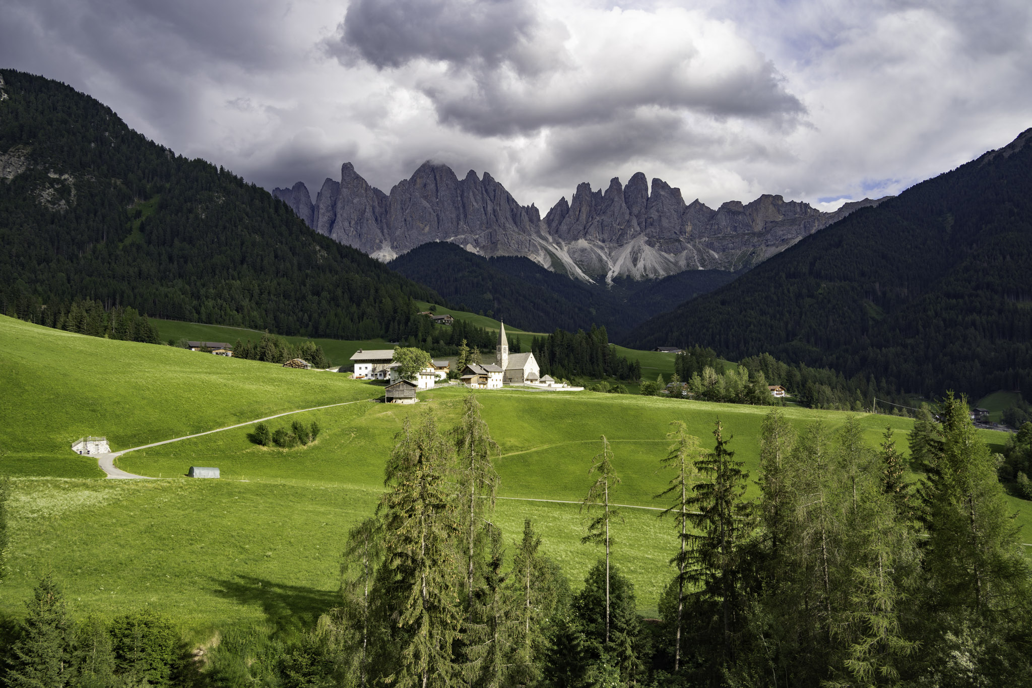 We enjoyed this spot for some time unencumbered by other tourists. A few did come walking by but kept going or went further up the hill. This place is smack dab in the middle of a village where real people are trying to live their lives. The 300-some residents do not like tourists and the roads all have boom gates that require a code. This means parking in town and making the steep trek up the hills to get to the best viewing spot to admire the Odle Mountain group. The residents don’t like people traipsing all over their fields, so we kept to the roads. This place was stunning and worth the effort. I recommend it and I would do it again.