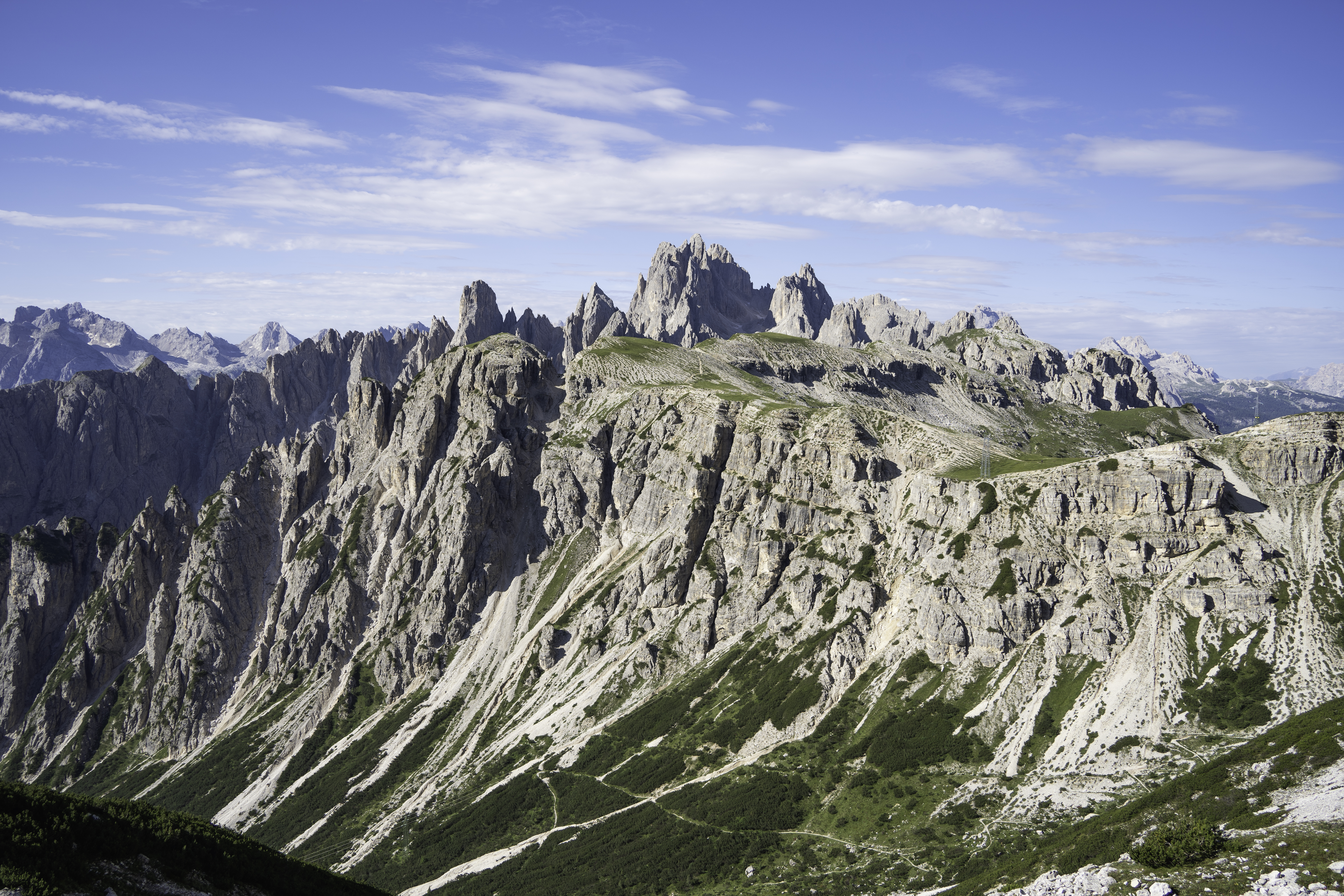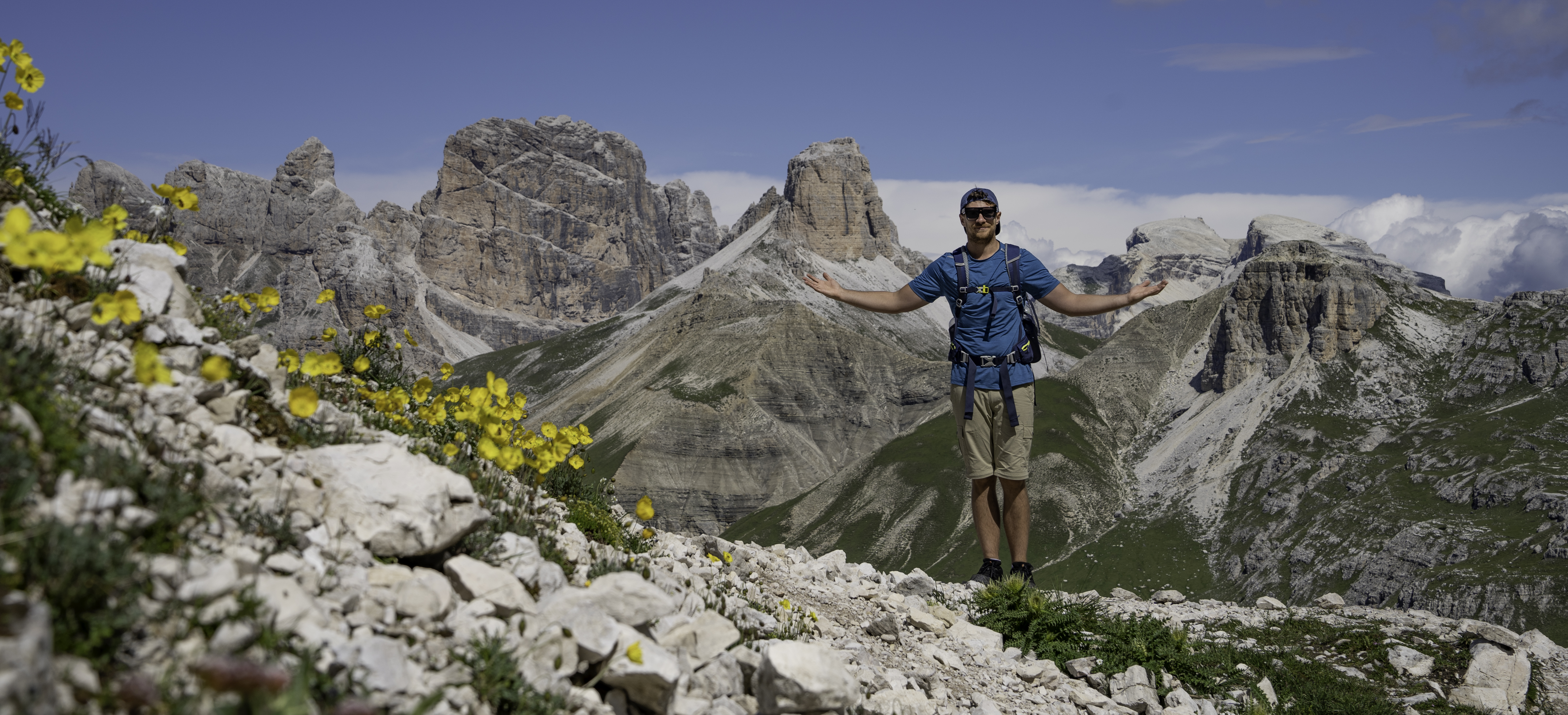 The Tre Cime Lavarado loop is one of the most popular hikes to do in this area, and for good reason. It is breath-taking at every turn. The loop is 10kms round trip and circumnavigates the three colossal pinnacles that gives Tre Cime its name. Two things we found out about it before beginning was that it would only take about 3 hours, and that it was mostly flat. Uh-huh, yeah right. I disagree on both counts. First of all, the hike was so gorgeous, that it’s impossible to not take photos every few minutes. This makes the time add up quickly. Secondly, while the hike does indeed begin flat, it does not remain so for the second half of the loop. In our opinion, this was a moderate hike that was quite a struggle at times because of how steep some of the inclines were. One stretch from the bottom of a valley back up to the parking lot area was so steep, I resorted to a trick I do when the task in front of me seems impossible: I counted steps. Make it 50 steps without stopping and then take a break for a minute. Repeat. Go further if you can, stop earlier if you must, but always aim for around 50 steps at a time. Even Callum admitted that this part of the hike was not flat, and that it shouldn’t be labelled ‘easy’ as that is quite misleading for the less adventurous.