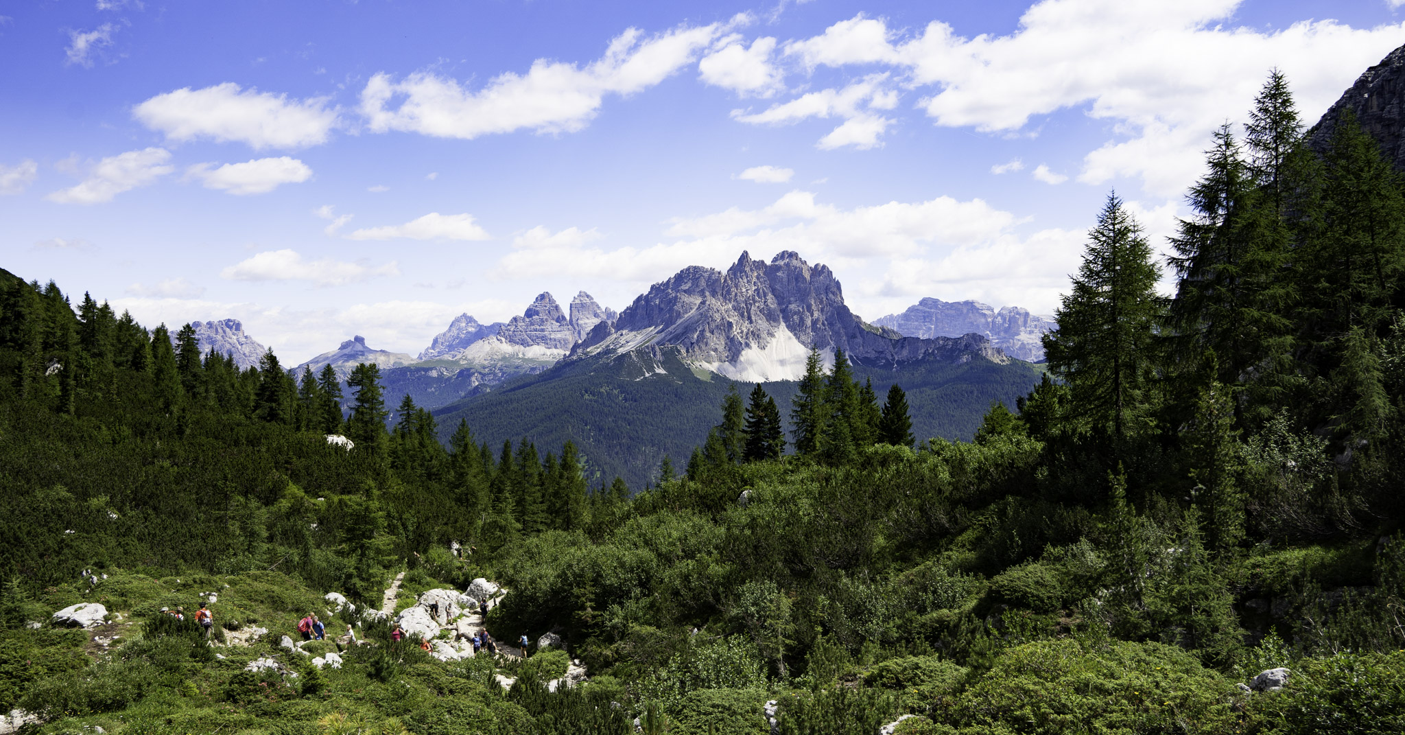 After walking only a short distance, we reached the Cappella degli Alpini, a small chapel. It was here we shed a few layers of clothing and went off the path to get a great view of Belluno below. Next, we made our way to another rifugio that we stopped at for a few minutes to stretch, drink water, and get some shade. Even though we hadn’t gone far, it was already around 930am and the sun was getting hot. After this we made our way to a few look off points and enjoyed a croissant that we had taken from our hotel’s breakfast room. What a place to eat a croissant!