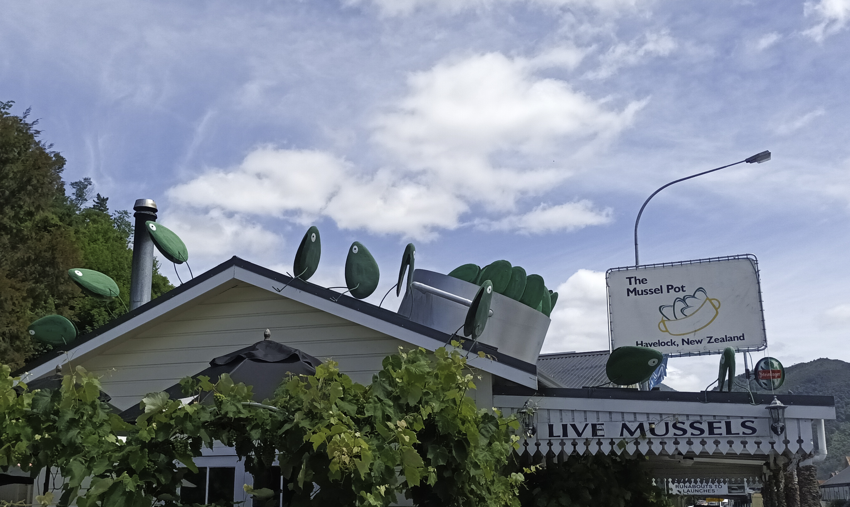 The next day we drove to Havelock, a tiny little town famed for its giant green mussels. We are not sure staying in the town was necessary, and if any changes to our itinerary were to be made, it would be to eliminate a night’s stay here. However, we did enjoy our lunch (I had a vegan burger that was mouth-wateringly delicious), and our accommodation was unique. I had to climb a ladder to get to my bed. Not my favourite, but certainly memorable.