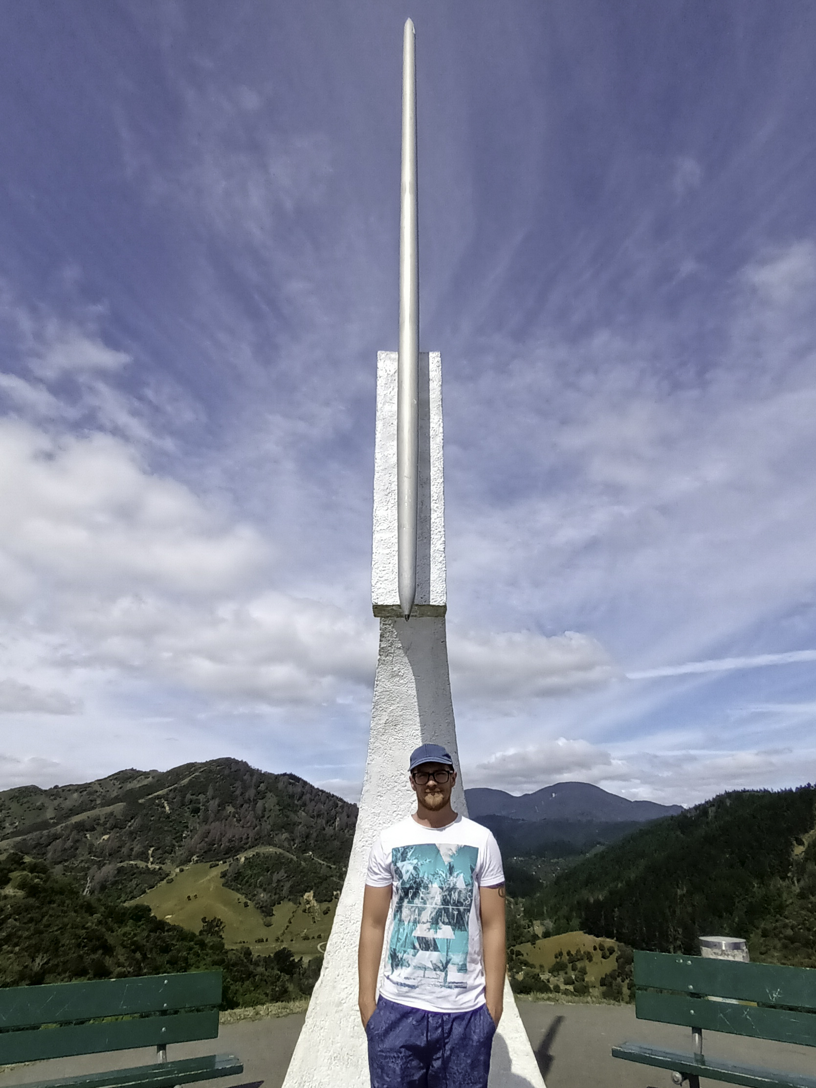 Next, we made the trip to Nelson, my favourite spot in all New Zealand. It’s just a city, but I really liked it. It had every sort of shop or restaurant you could ever want, our accommodation was at the home of an antique dealer and was so, so, cool. And, it was close to the Abel Tasman National Park, which I thought was beautiful. While in Nelson we went to the art gallery, did some shopping, and walked up to see the ‘center of New Zealand’ atop Botanical Hill. It was a short and steep climb which had me panting and sweating more than I had planned. I was rewarded with great views and plenty of tui sightings, my new favourite bird.