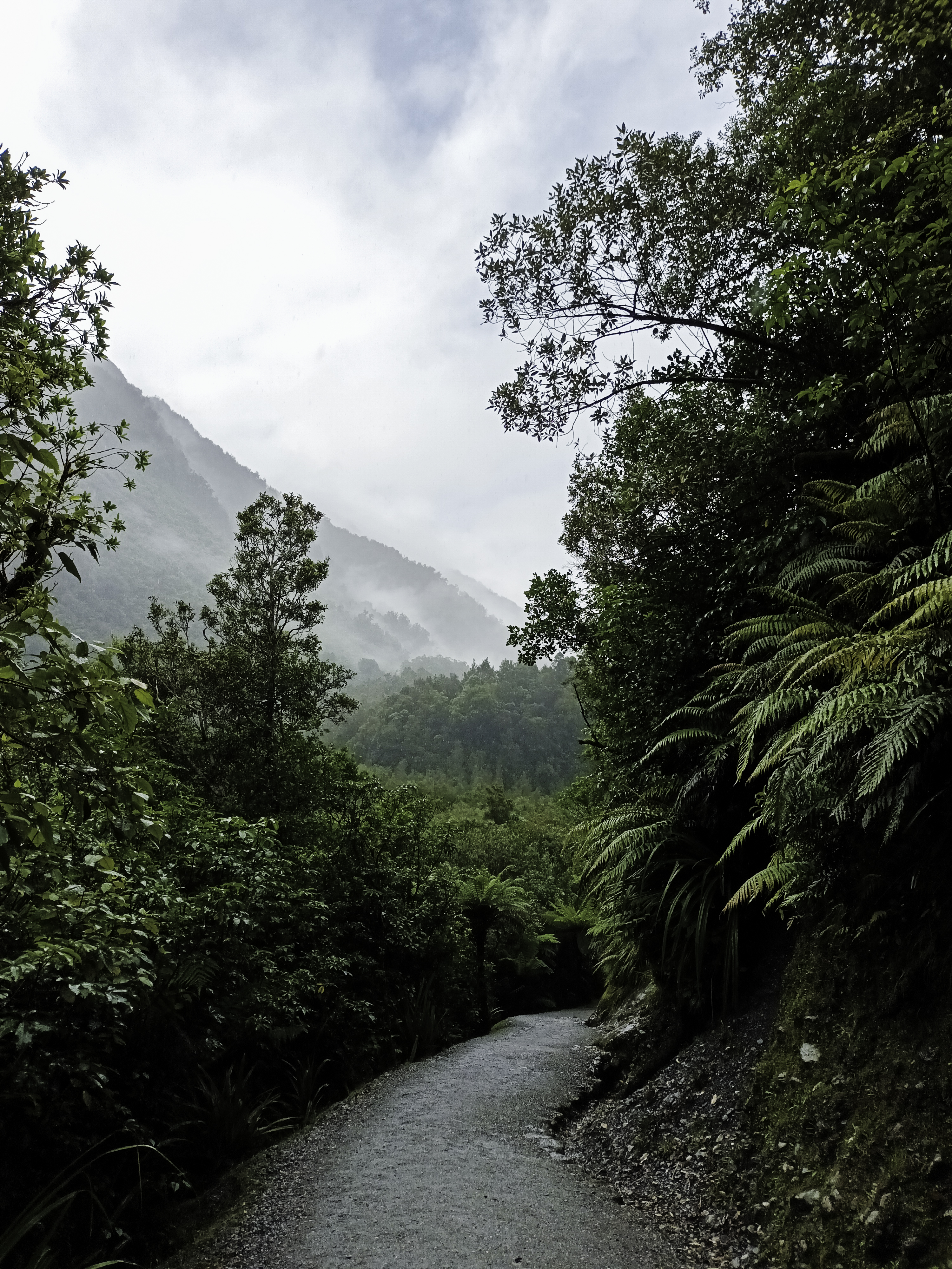 After Punakaiki we went to spend a night in Hokitika, the point being to stay at an accommodation with laundry facilities. We attempted walking the Hokitika Gorge, but it was rainy and cloudy, and we couldn’t see much. We also stayed in Franz Joseph to see the glacier, and were a bit disappointed by the rainy weather. However, the following day we drove to Fox Glacier and did a 6km hike to see it as close up as we could, which wasn’t that close, but since the sun was shining, we didn’t mind.