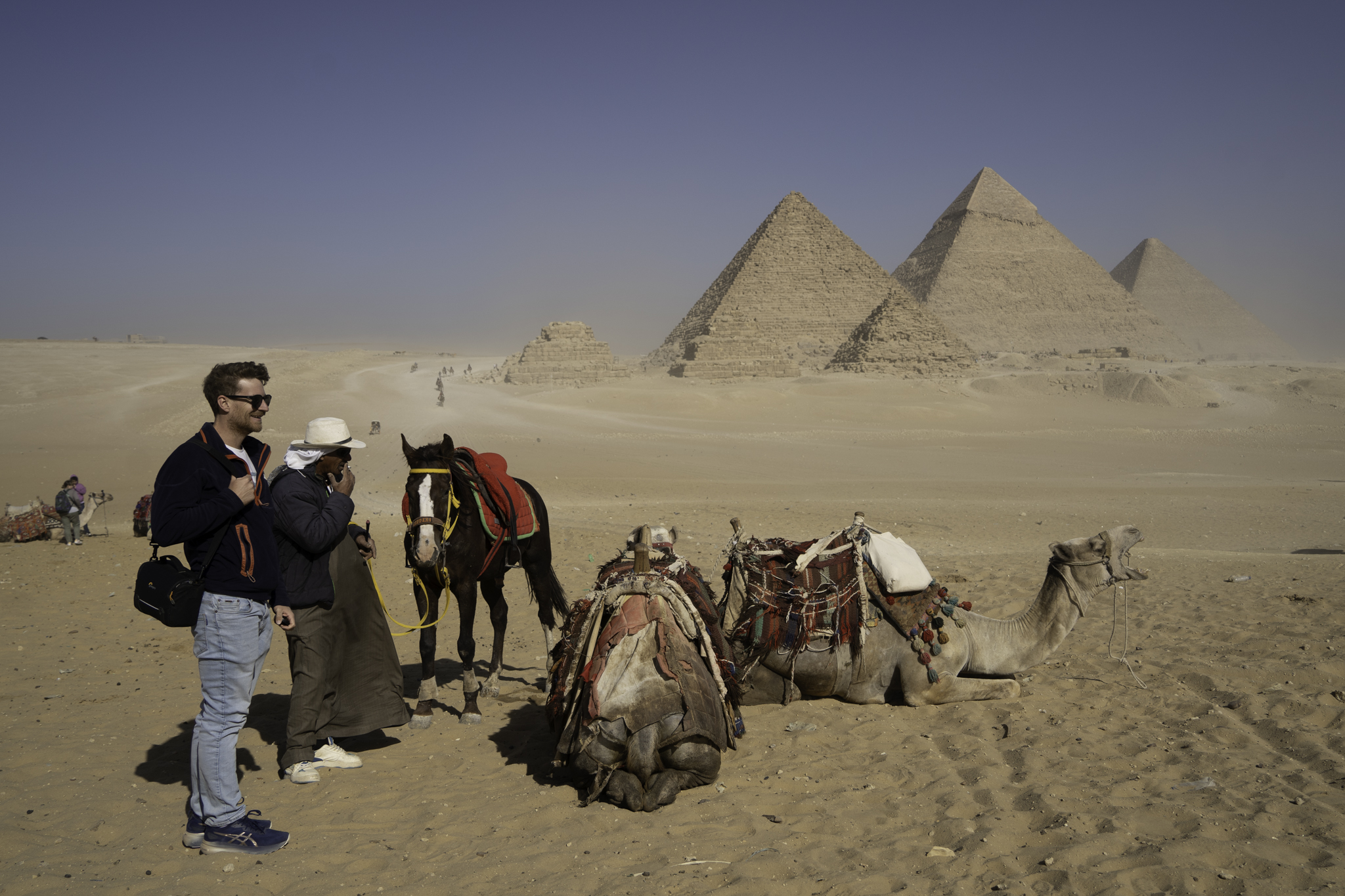 The gusty wind blew sand in our eyes and I was thankful for the kerchief I had tied around my neck, cowgirl style. We walked a bit and Callum warned me of all the touts that would try and tell me or sell me things. For him, the last time he was in Egypt thirteen years ago, he was one of the only tourists as it was during their revolution. He got pestered every minute by desperate people wanting to sell him things or take him on tours. Despite the chillier weather in December, there were hundreds of tourists and we were not as conspicuous as I first thought.