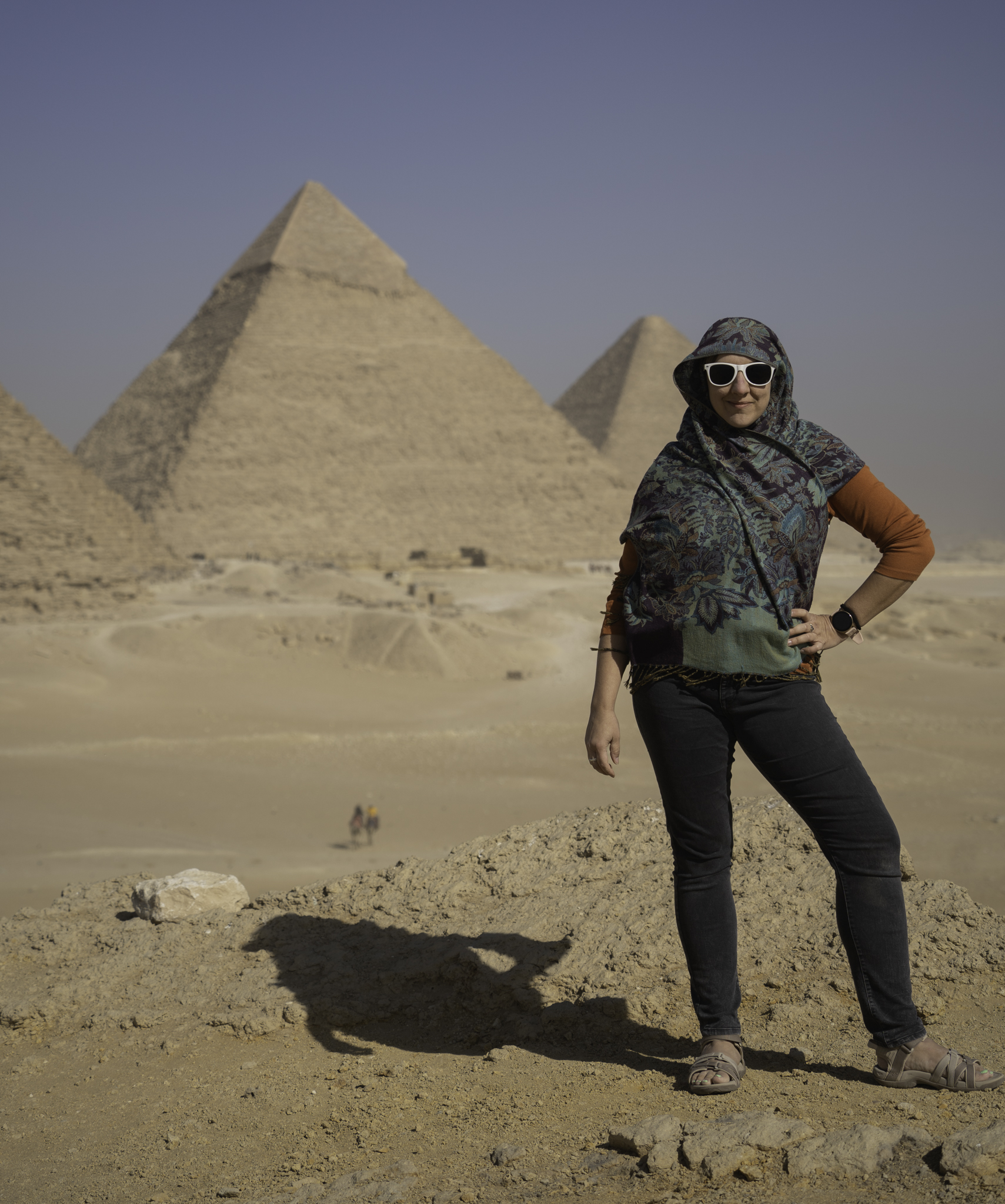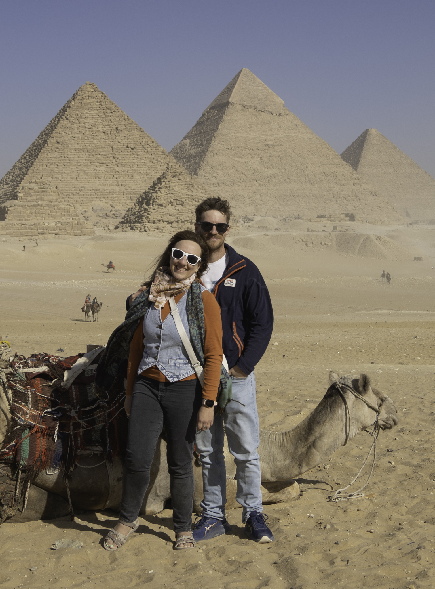 We stopped at a great view and the guy took some photos of us, but he didn’t really frame them that well, and I didn’t get a single photo of me on the camel, which is what I had envisioned: me on a camel, a glamourous head scarf gently blowing in the wind, the camel facing the camera, the pyramids in the background, but also in focus somehow…..I was imagining Instagram, but Reality was winning. The photos posted below are truly the best pictures we got from this experience. They have all been edited to adjust horizon line, shadows, and other imperfections.
