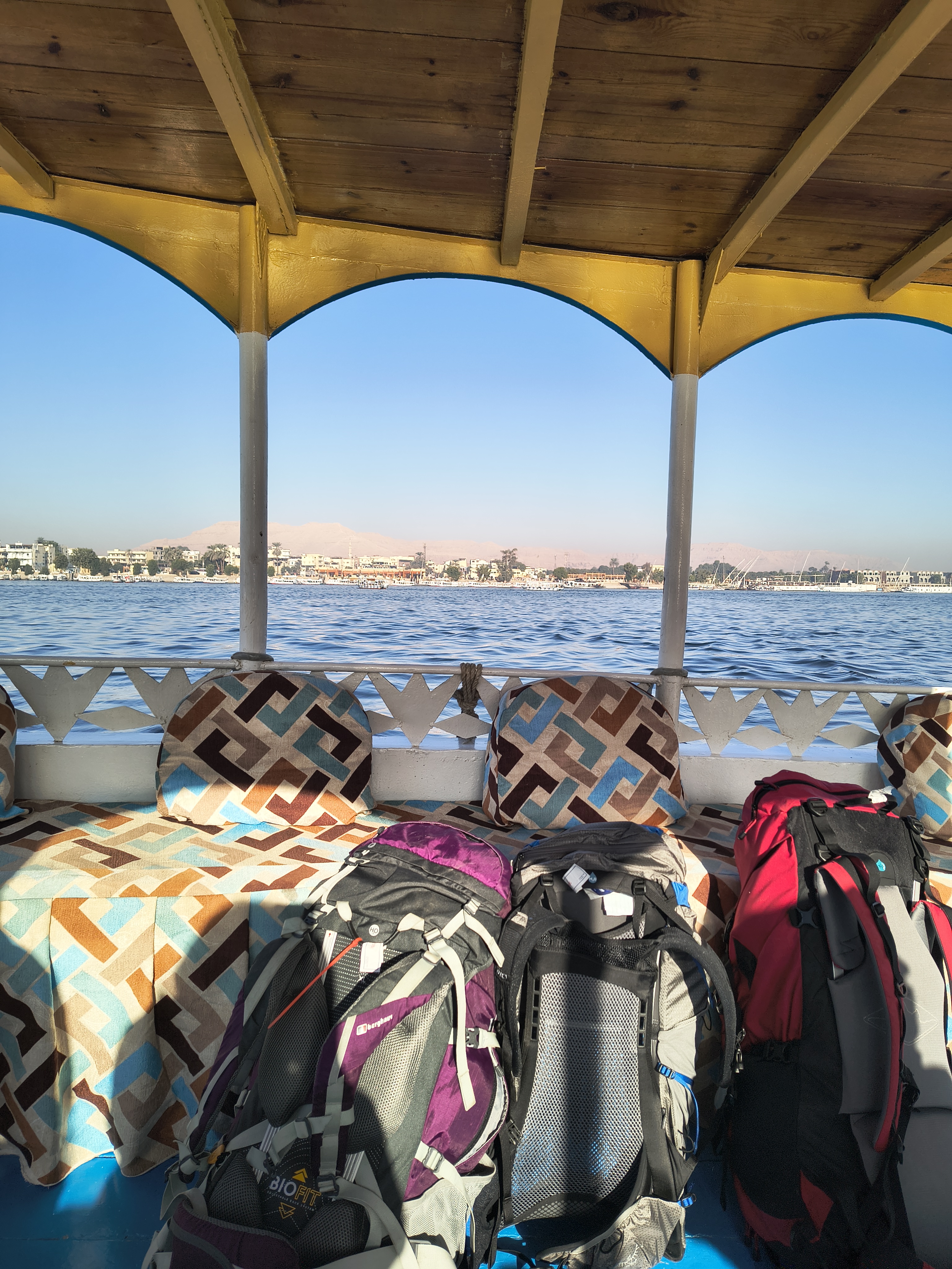 We rolled into Luxor at around 8am and I was never so thankful to see a dirty little town in my life—it meant we could get off the bus. We were met by a driver who took our bags and drove us to the riverbank, where another guy was waiting for us to escort us onto a boat. From there we crossed the Nile to the westbank where we were staying at a guesthouse. We were met by another guy who helped to carry our bags to the guesthouse.