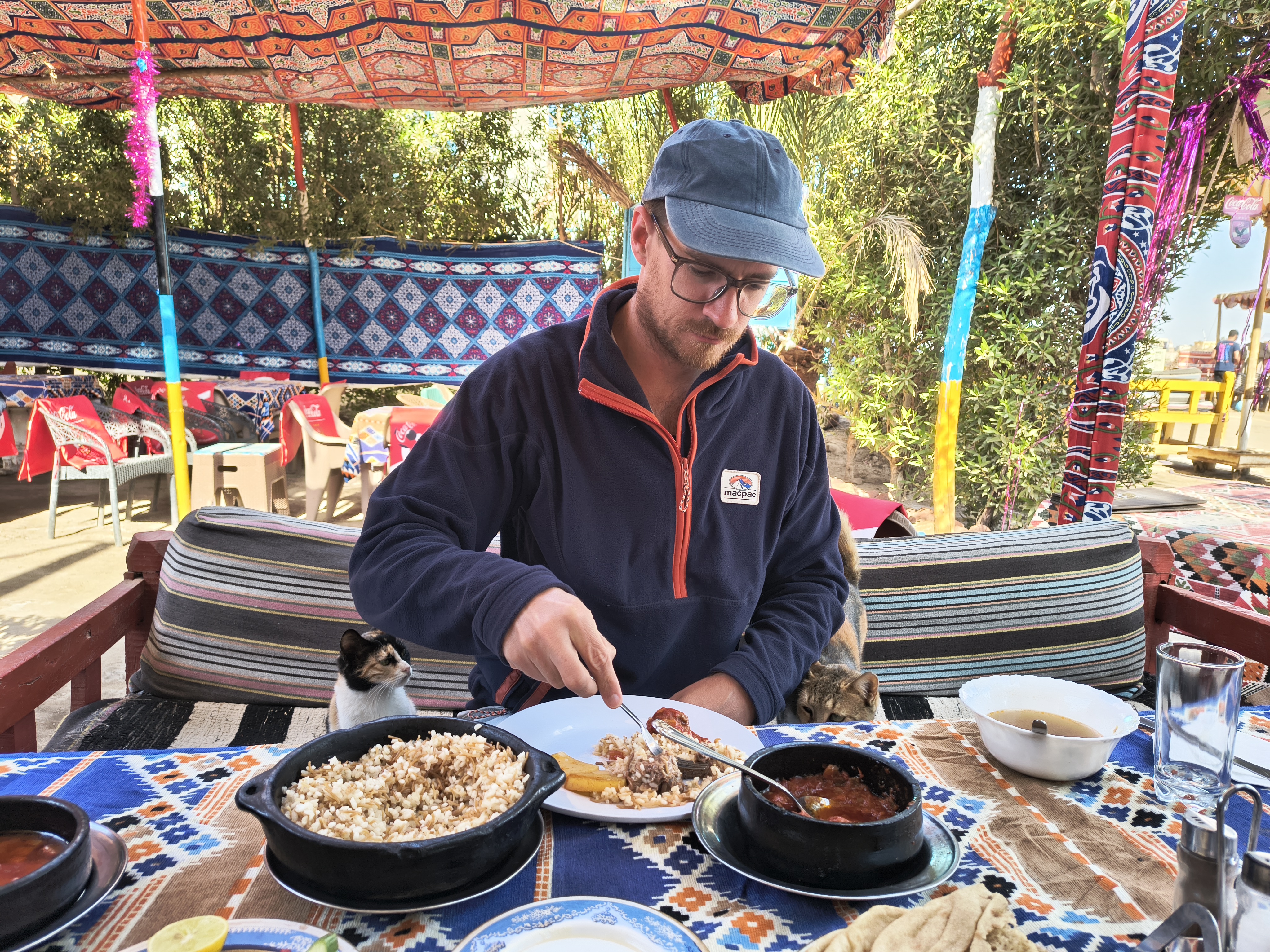 We took things easy that first day. We slept for a long time and then found some lunch nearby. We went back to our place to rest a bit and watched part of “The Mummy” (one of Callum’s favourite movies and an appropriate choice given where we were.) We had a sail in a felucca on the Nile, but since there was no wind, we sort of just floated and had tea, eventually getting rowed back by the captain. We found dinner nearby and had an early night.