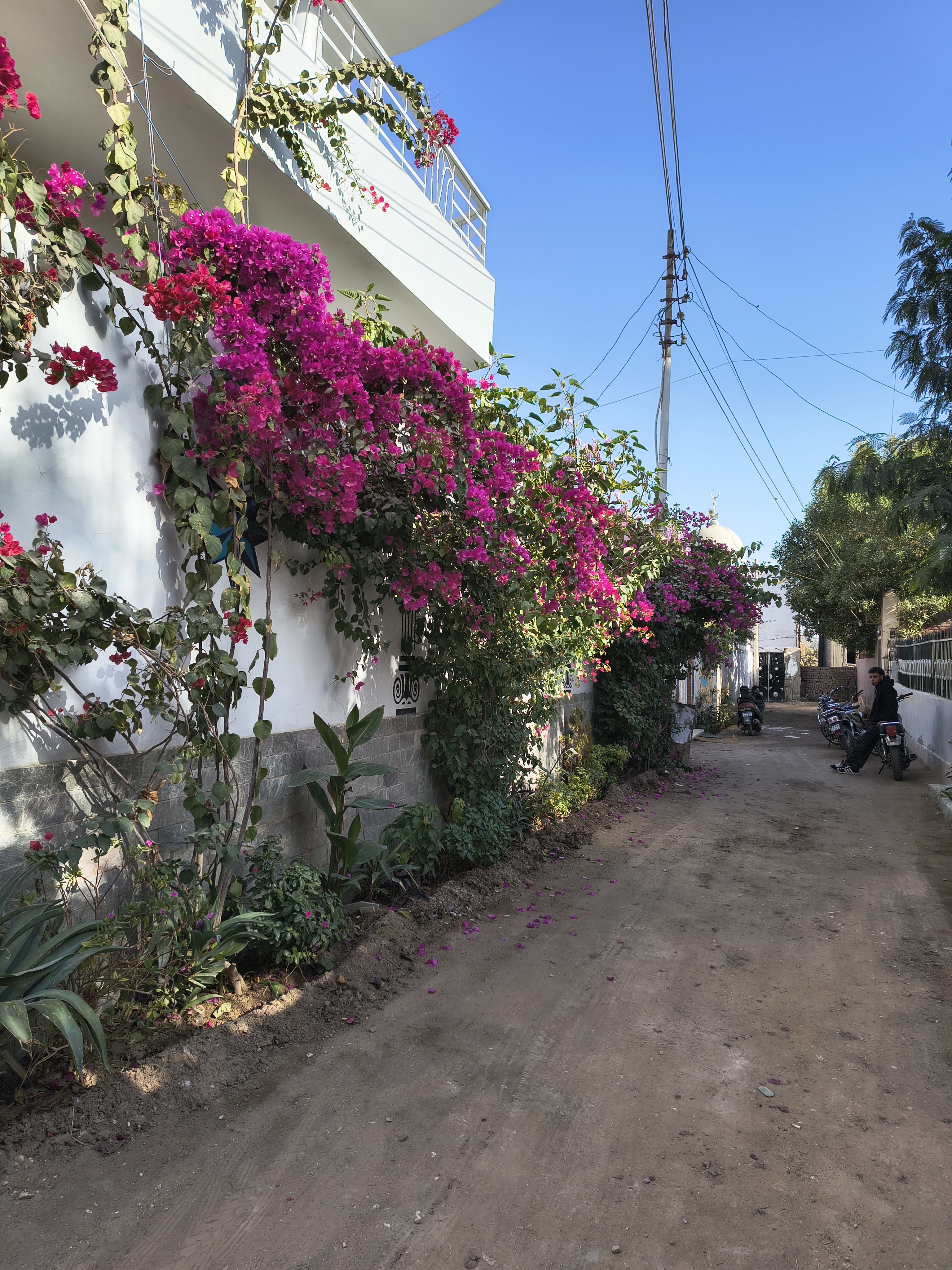 The walk from the boat to the guesthouse was only about five minutes, and when we stepped foot onto Ibrahim’s property, we felt relief. Sunlight was gleaming off the clean white tiles, a welcoming seating area was free for us to rest, and breakfast and coffee were supplied almost instantly. We were exhausted and wanted to sleep but had to wait for our room to be ready. In the interim Ibrahim put us in a trance with his dulcet tones and promises, taking the reins of our travel plans, and creating an itinerary for us for the next four or five days. We hypnotically agreed to everything and handed him many bills, comforted by his assurances and compliments. Our room became available by 9am which was wonderful. We were able to rest at last. We didn’t even mind the twin bed situation—we were both excited to get some proper sleep.