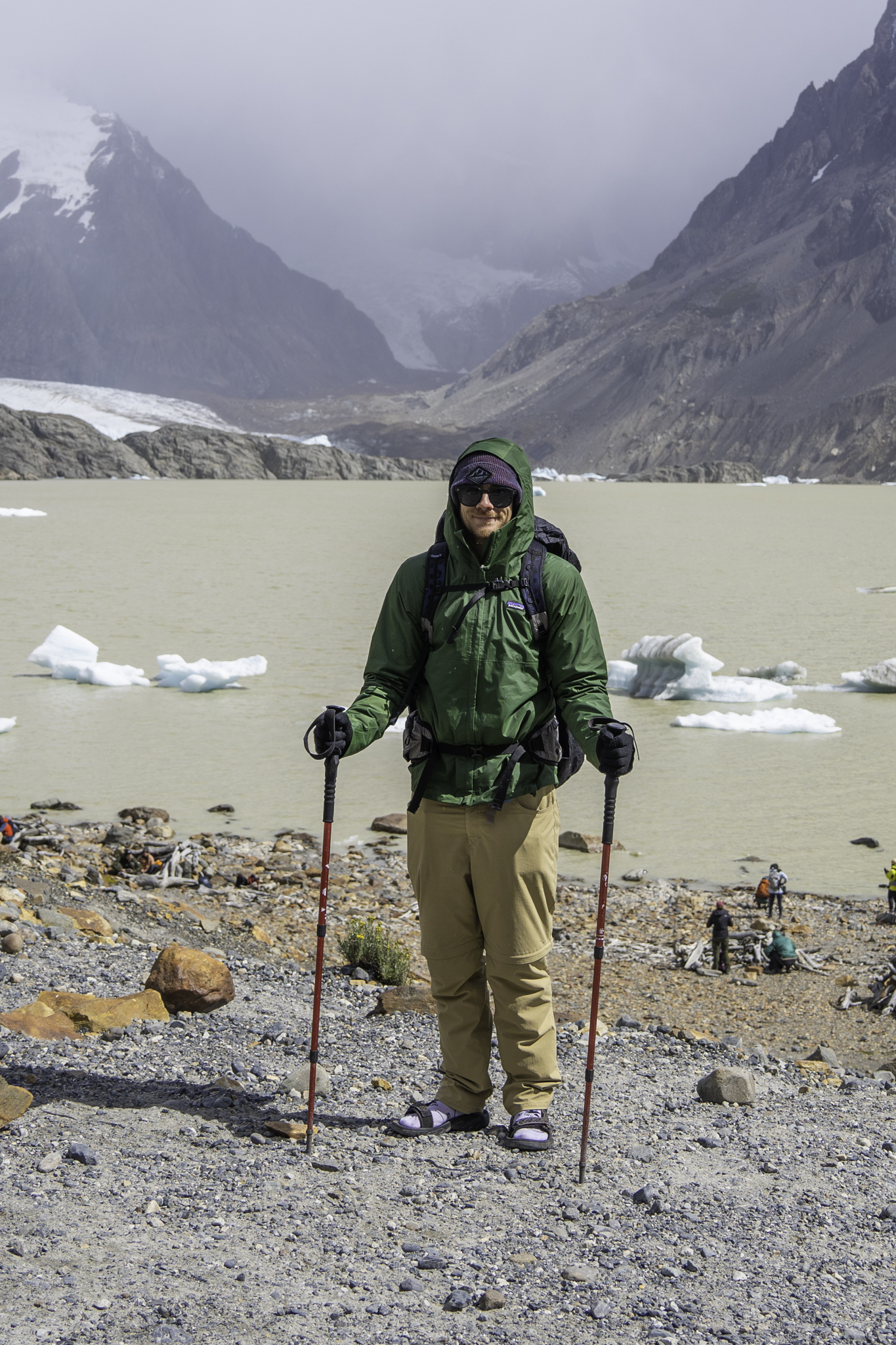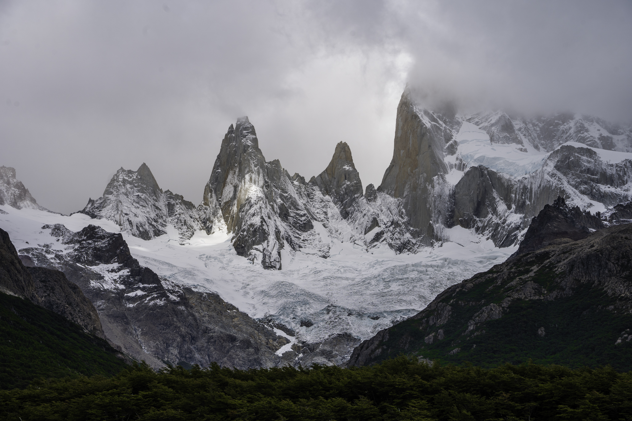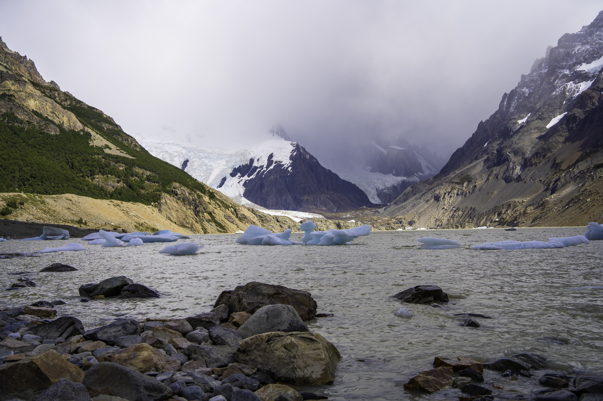 This was another big hiking day, roughly 24km, to Laguna Torre. This was a much easier hike than Laguna de los Tres and had significantly less people on the trail. It was a steady incline through beech forest until a section of moraine that gave amazing views of the back side of Fitzroy. The beauty of this hike is that it follows a valley, so it has very little elevation gain, which also meant that we had a constant view of the mountains around us, without anything blocking them. Towards the end of the trail, it started to hail just as we approached the final point of the hike, the lagoon, which had icebergs floating in it. We tried our best to enjoy the view, behind a driftwood shelter built by other genius hikers. We hunkered down and ate our lunch but the hammering rain mixed with snow made it hard to enjoy. We stayed long enough to get good photos and appreciate the location, but we did get unlucky with the weather this day.