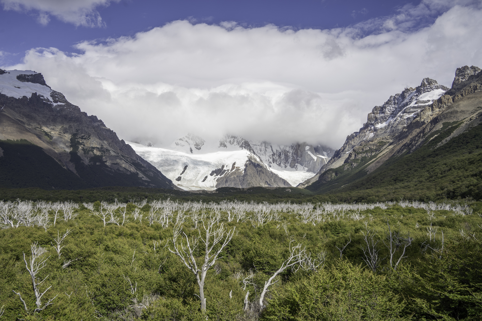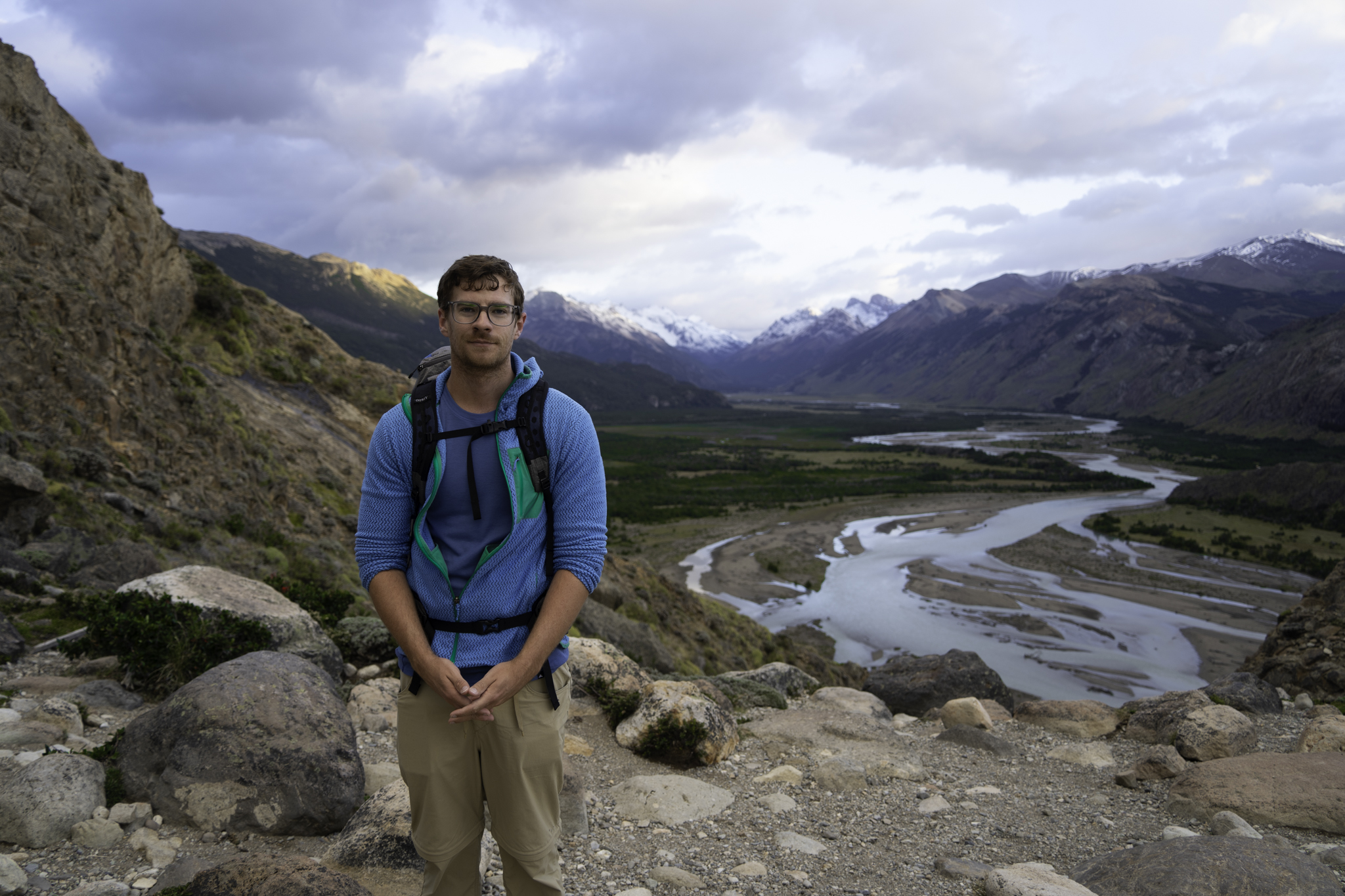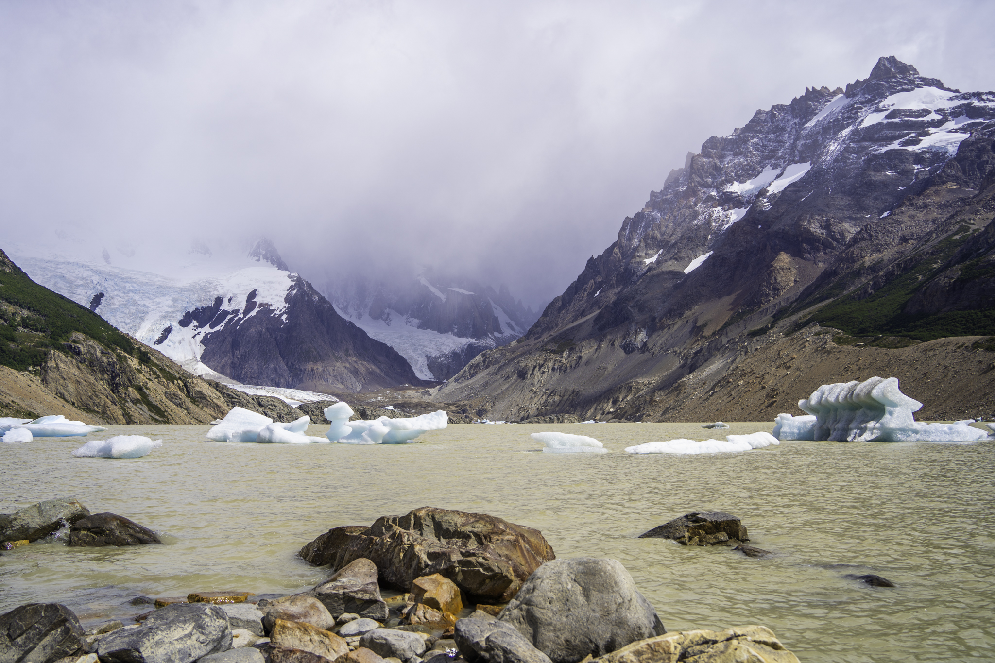 This was another big hiking day, roughly 24km, to Laguna Torre. This was a much easier hike than Laguna de los Tres and had significantly less people on the trail. It was a steady incline through beech forest until a section of moraine that gave amazing views of the back side of Fitzroy. The beauty of this hike is that it follows a valley, so it has very little elevation gain, which also meant that we had a constant view of the mountains around us, without anything blocking them. Towards the end of the trail, it started to hail just as we approached the final point of the hike, the lagoon, which had icebergs floating in it. We tried our best to enjoy the view, behind a driftwood shelter built by other genius hikers. We hunkered down and ate our lunch but the hammering rain mixed with snow made it hard to enjoy. We stayed long enough to get good photos and appreciate the location, but we did get unlucky with the weather this day.