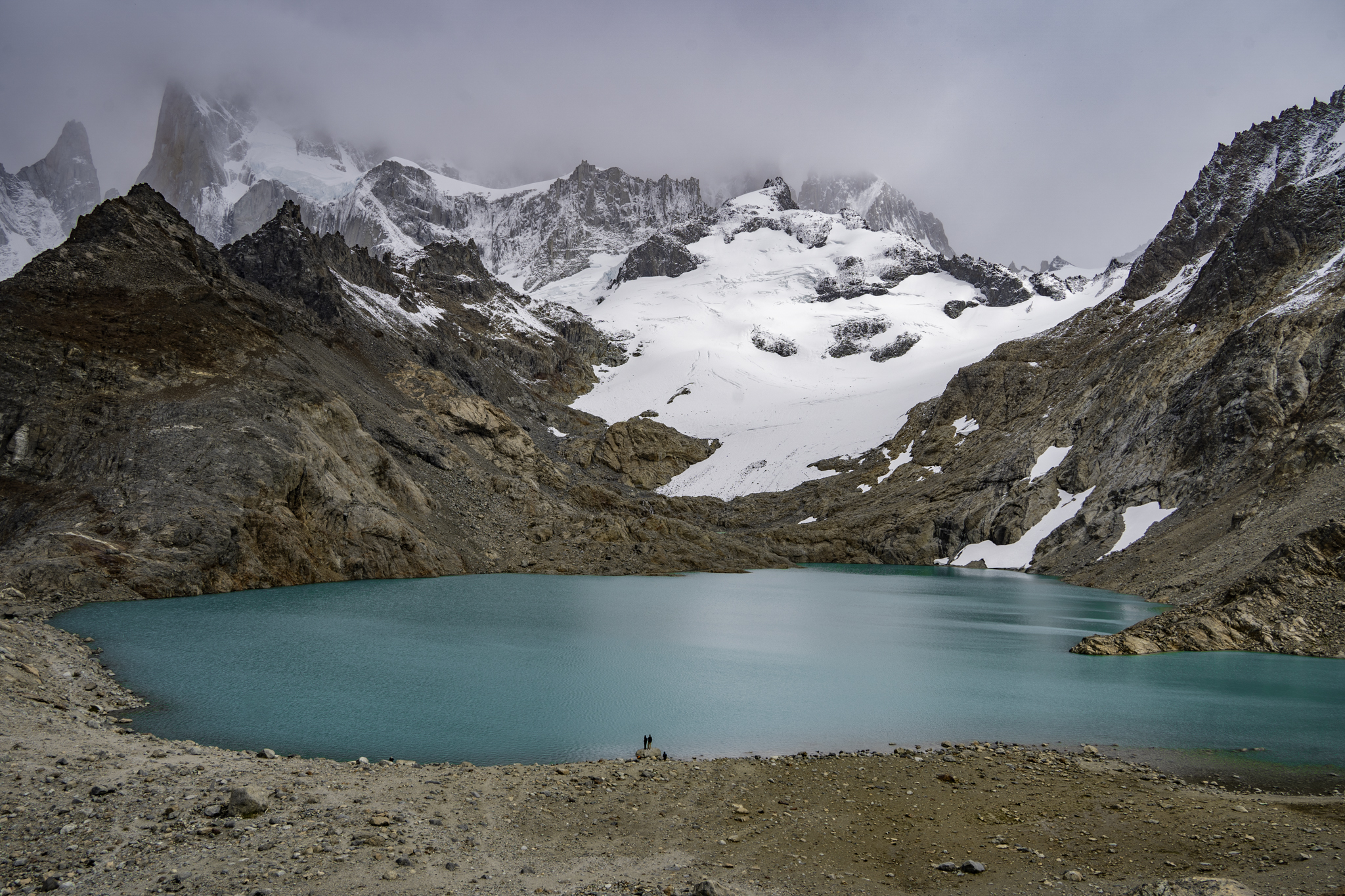 We had lunch and watched a local fox and falcons moving around the rocks, and then it started snowing. Even though it was freezing cold and we were exhausted, even Rachel had a smile on her face for this hike. The way down doesn’t afford you the world-class views, but it does allow you to appreciate the silence of nature (when large groups of hikers and tour groups aren’t passing by yelling to each other and listening to loud music). The only negative of the entire hike is the crowds. Instagram is very good at hiding the reality of what nature can be like when a place is popular. This is the most popular hike in all of Patagonia, and there were probably 2000 people hiking the day we did it. On the way up we probably only saw 30 people (some coming down from camping and some crazy people who trail ran to the top and down by 8am), but on the way down, without exaggeration, we had to stand in a line in some sections to let others pass. This is a completely acceptable fact of life that you need to share nature with other people, but man it’s hard in beautiful places when it starts to feel like you’re in a theme park, rather than the wild. You also start to wonder how many people would be here if it wasn’t for that famous Instagram photo. Also, would we have known about this place without it too?