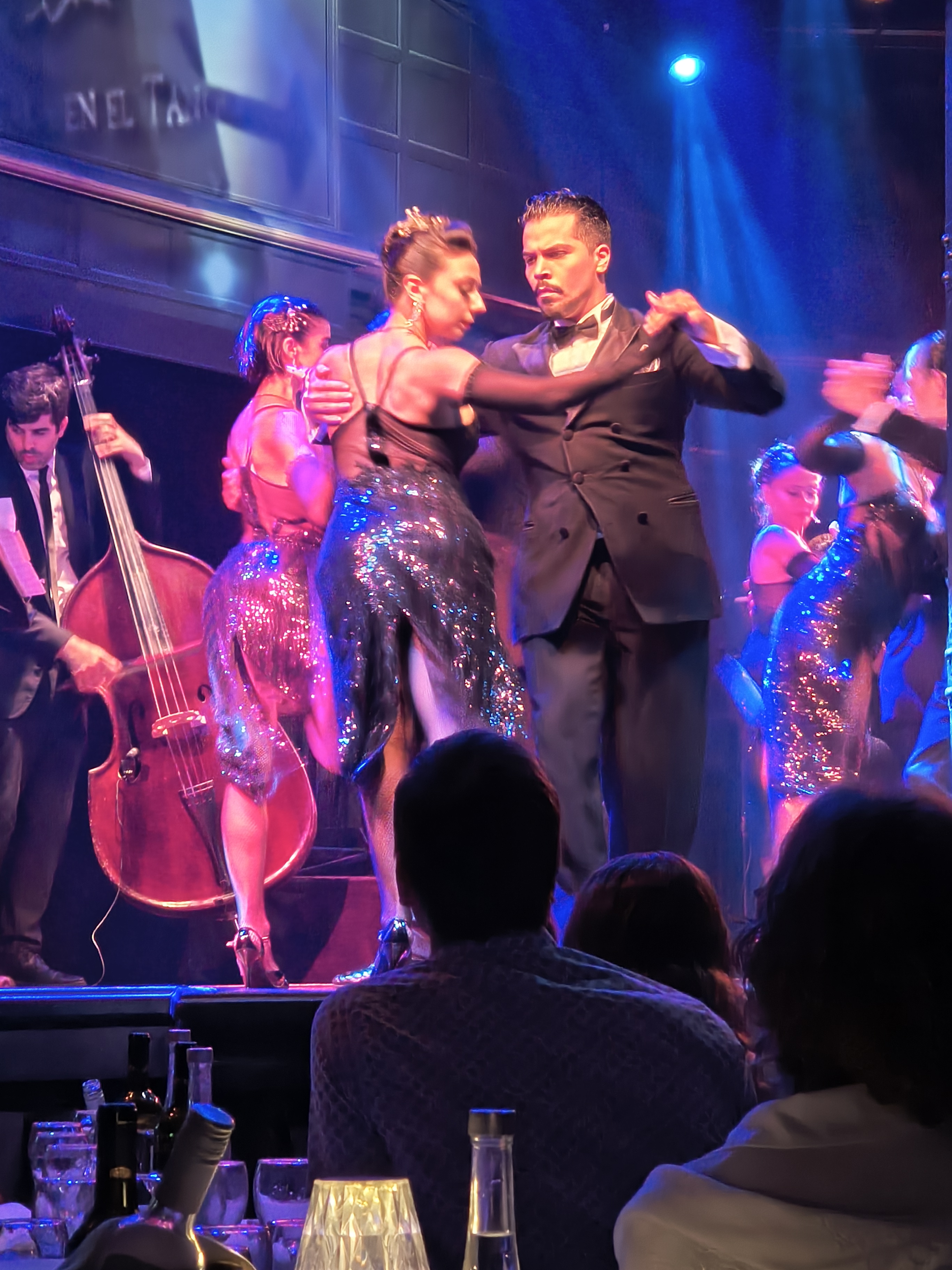 One touristy thing we did in Buenos Aires was to go to a tango show in a restaurant/theatre, which was a block away from our accommodation. I’m not the biggest fan of these sorts of shows and they always feel kitschy to me, but Rachel loves a music and dance performance (just like I love hiking and she just kind of tolerates it most of the time). The stage was quite small and there was a pillar in the middle holding up the roof, so the dancers had to be quite creative to include it in their choreography. We got to see a mix of live music, different scenes from Argentina’s history of tango and of course the dancing for about two hours.