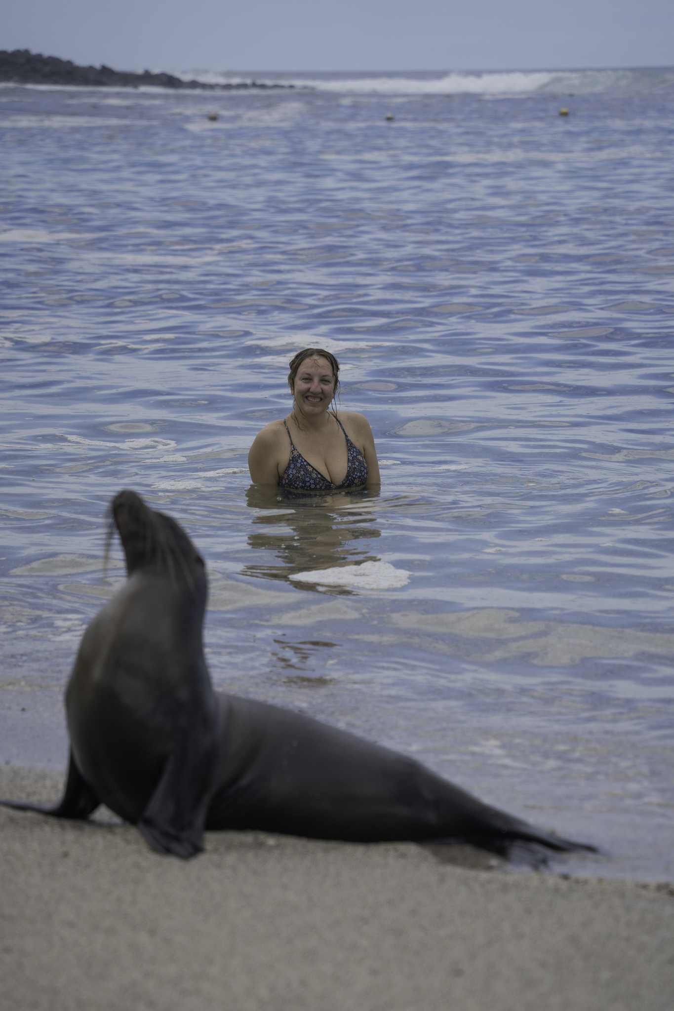 Our second day we did the Highlands tour via a taxi driver which included hiking up to a volcanic lake, visiting the tortoise sanctuary, and swimming at Puerto Chino beach. We enjoyed the exercise and views from atop the crater lake, but didn’t see any birdlife. We drove a short while to the tortoise reserve and did a self-guided walk finding small baby tortoises, teenagers, then a group of older, bigger ones munching on their lunch. I liked watching them and took about twenty different videos. The way they eat made me laugh. We then cooled off at the beach but couldn’t snorkel as the current was a tad too strong. I was okay to just have a dip or two in the water and admire the view as well as the salty sealions.