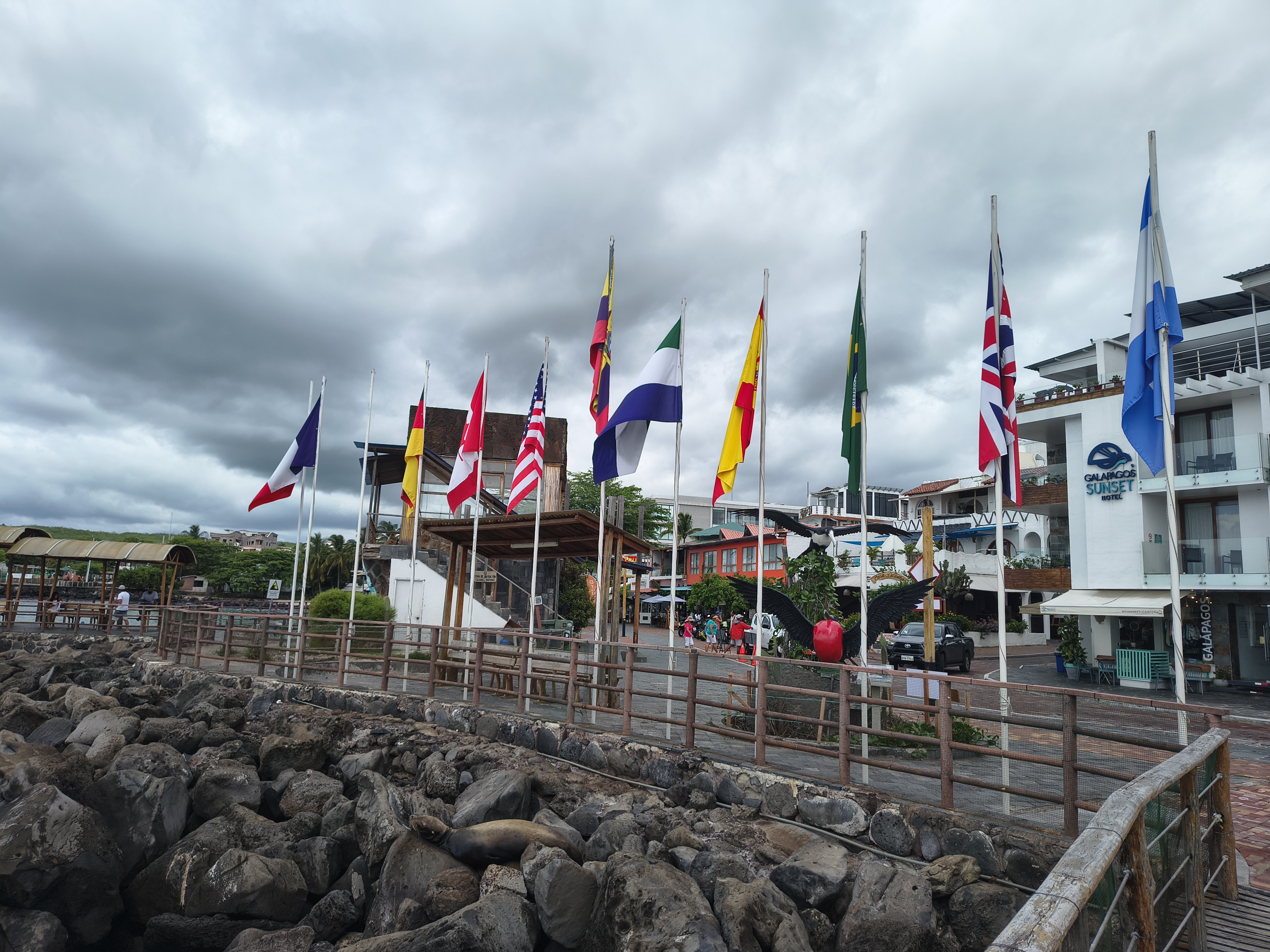 San Cristobal turned out to be our favourite. It was a good mix of island feel with modern conveniences. We were stunned by how much wildlife we could see in the middle of town: hundreds of sealions, many just lounging on benches and sidewalks in the way of people, lizards, crabs and iguanas sunning themselves on the rocks, blue-footed boobies doing the same, and big pelicans swooping in the sky, as well as frigate birds. Seeing all these creatures made us excited to be there.
