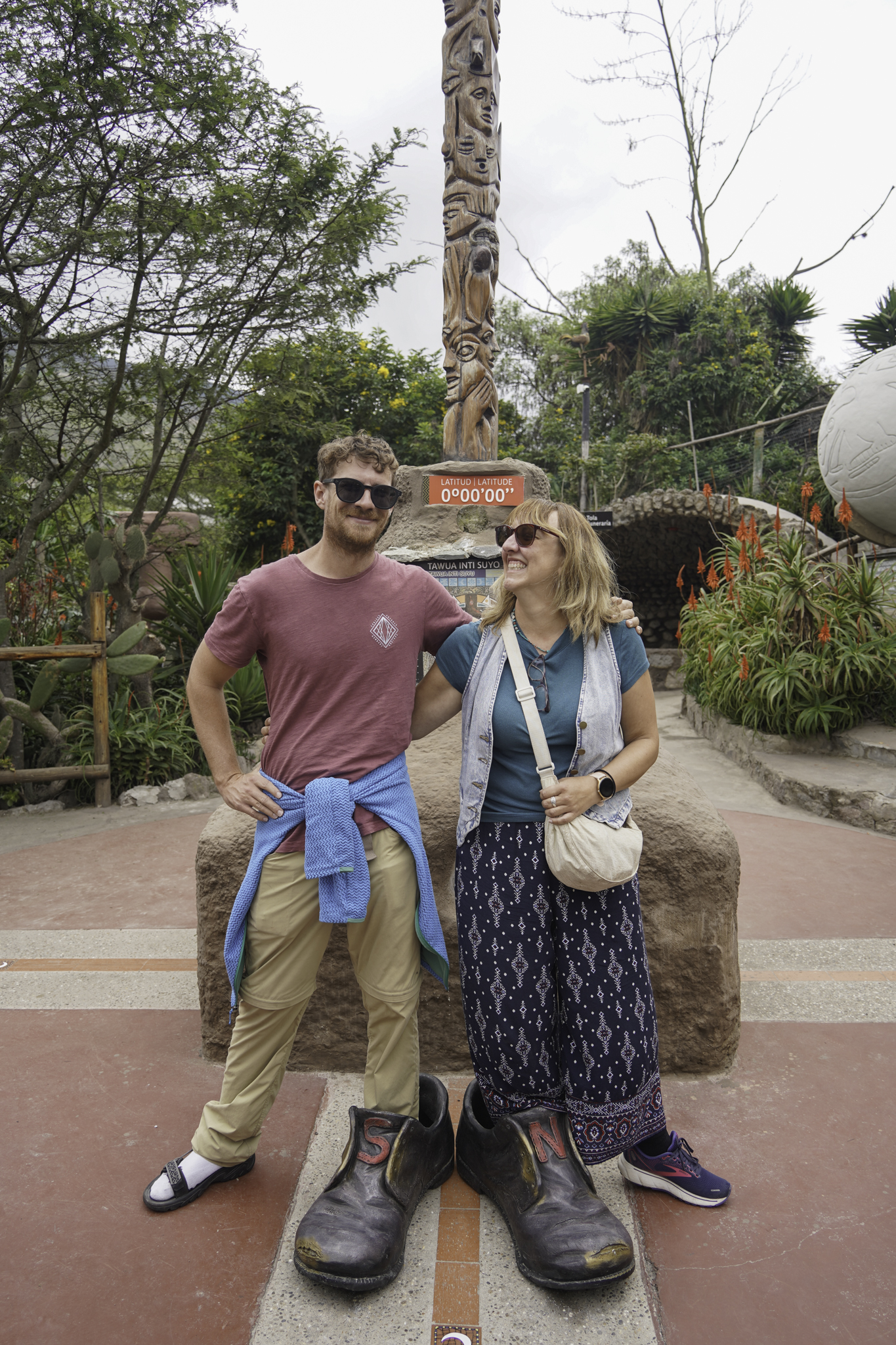 After our three days in Mindo, we were driving once more to Quito to take our flight out of the country. Along the way, we got our driver to stop for a couple of hours in Cuidad Mitad del Mundo, the town that is on the equator. We went to two ‘museums’. The first one was simply called Mitad del Mundo which was basically like Disneyland and a bit gimmicky, but a good place to get your picture of yourself standing in both the northern and southern hemispheres at the same time. A short 10-minute walk away along the highway is the other museum Museo de Sitio Intiñan which was also like Disneyland, but more natural and like a well-oiled machine. To visit you must do a tour. We only had 45 minutes for an hour-long tour, and thankfully we were put with only one other couple who didn’t seem to mind the rushed program. Our guide talked about how they experience life at latitude 000 and showed us fun things like swirling water clockwise in one hemisphere, counterclockwise in another. The interesting thing about this location on planet earth is that it is the only city in the world on the equator that is in a mountainous region. There are many other cities worldwide that are on or very near the equator, however. I marvelled at all of the flowers blooming and thought to myself how wonderful it was that we happened to be there in spring. I realised that the weather must not change at all…I confirmed with our guide that it always looks like spring, and that every day is always 12 hours of light, 12 hours of dark, year-round. How strange! Very easy to live a life of routine, though.