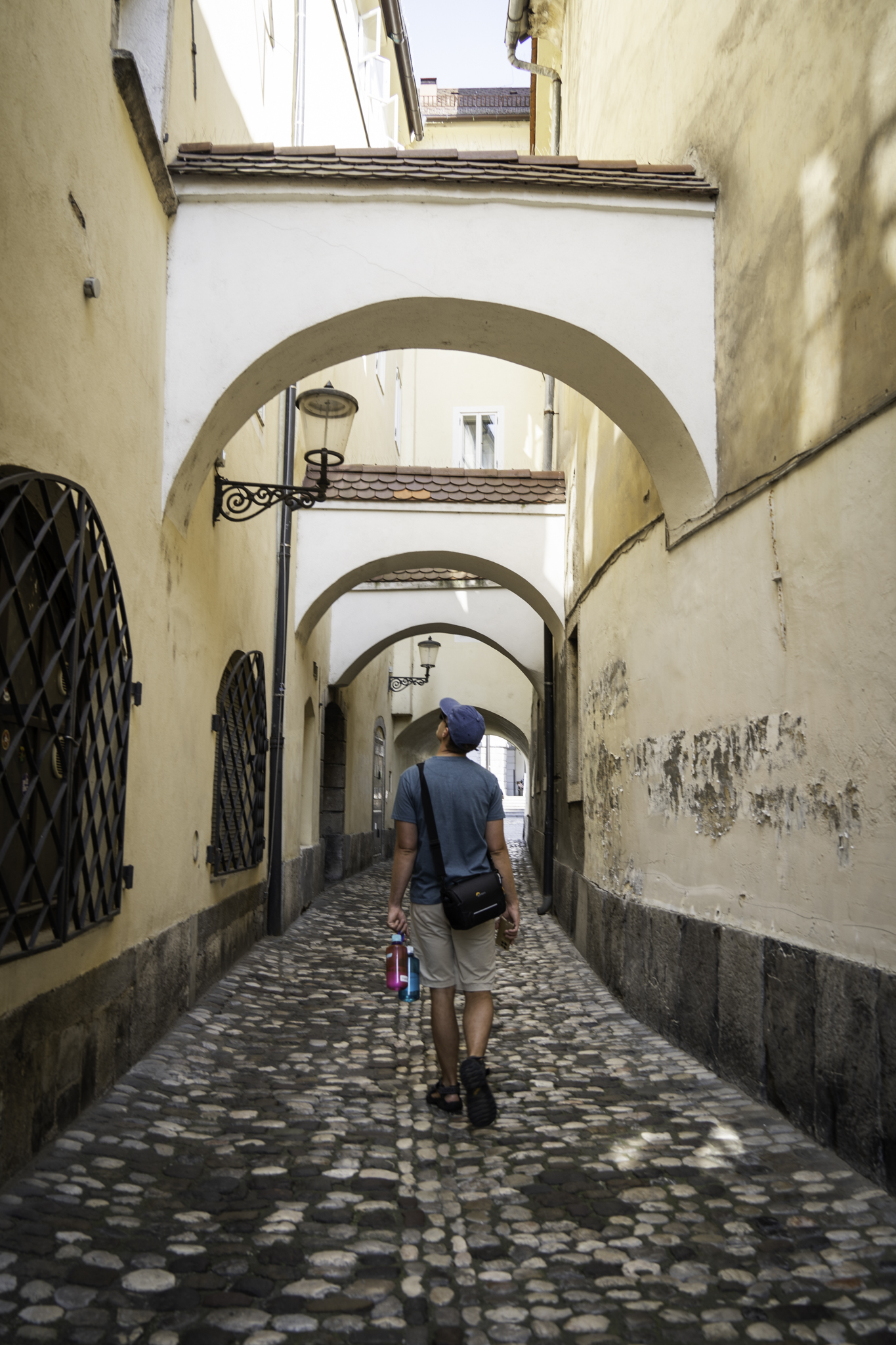 The next morning, we got up and went in search of breakfast. We found a cute little café packed with tourists and several flustered looking servers. It was Sunday morning, a day of rest for most places except restaurants and bars. This means that if you want to self-cater while in this part of Europe, you better get your act together and shop for groceries before the stores close on Saturdays. Later, in search of lunch, we looked around at the city. I was pleased with how very European everything was. That might seem like a silly thing to say, but I think I probably should have been born European. I love it so much! The history, the architecture, the art! The pedestrian-only places, the cobblestone streets! It was so good to be back; I love old buildings, picturesque bridges, fountains, and castles. This capital city had it all and it was a gorgeously warm day. I have since read that it is one of the most underrated cities in Europe and I would have to agree.