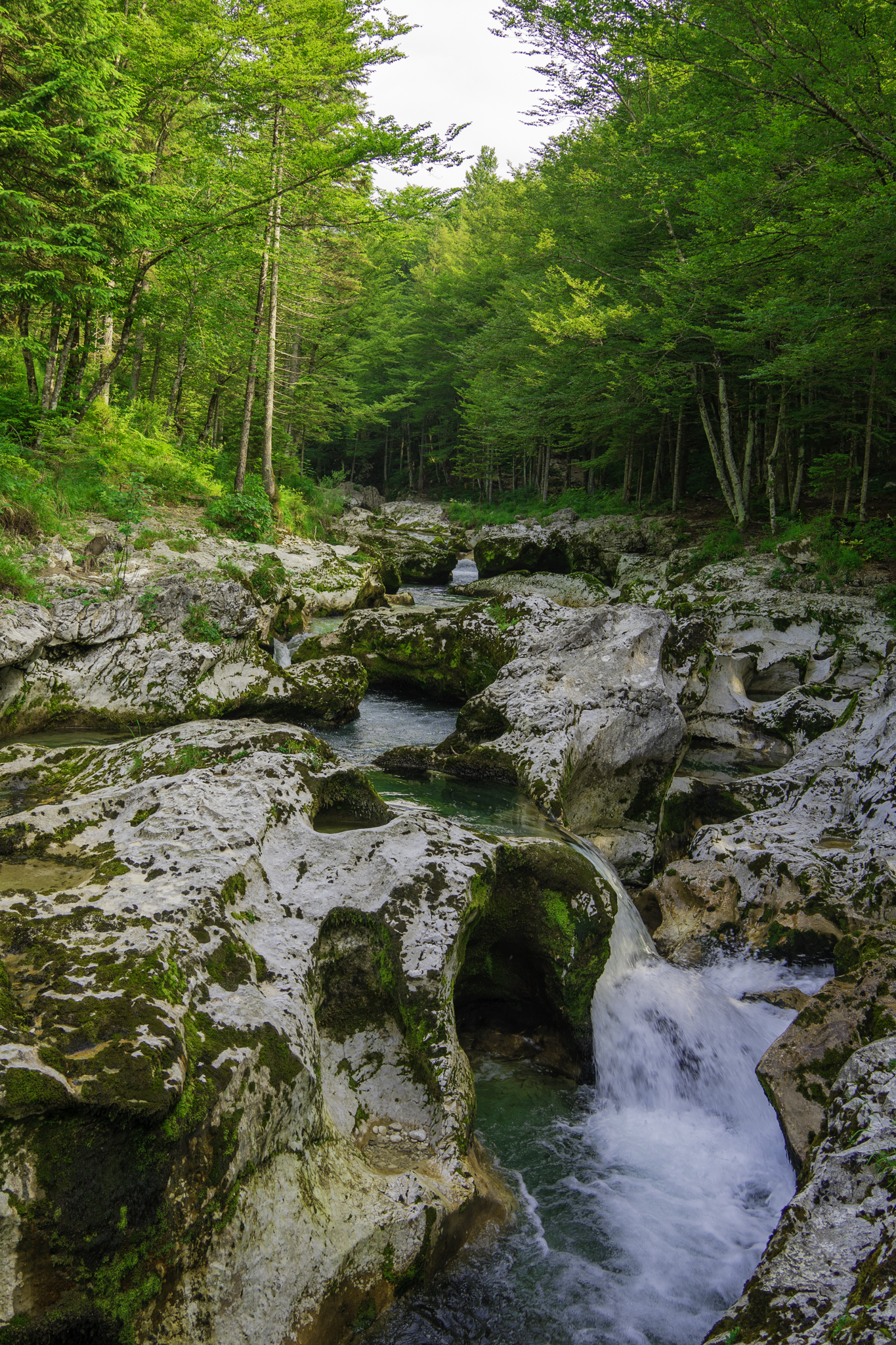 From Bled we made our way to visit the Mostnica Gorge. Callum had planned to do a big hike here, but when we arrived, we both realised just how exhausted we both were. We did a small traipse through the forest for a few kms and turned back to our car. It was beautiful, and I had fun discovering all the small, unique flowers there, but neither of us were feeling it. There is an 11km round trip you can do. Since the country we were in directly before Slovenia was Iceland, and Iceland is positively littered with waterfalls and gorges, the quaint little waterfalls we saw here weren’t appealing enough to set aside our tiredness to discover more than we did. We stayed in a very small village called Čiginj for three nights and recuperated. We went to the Soča river one day and that is all I did while there.