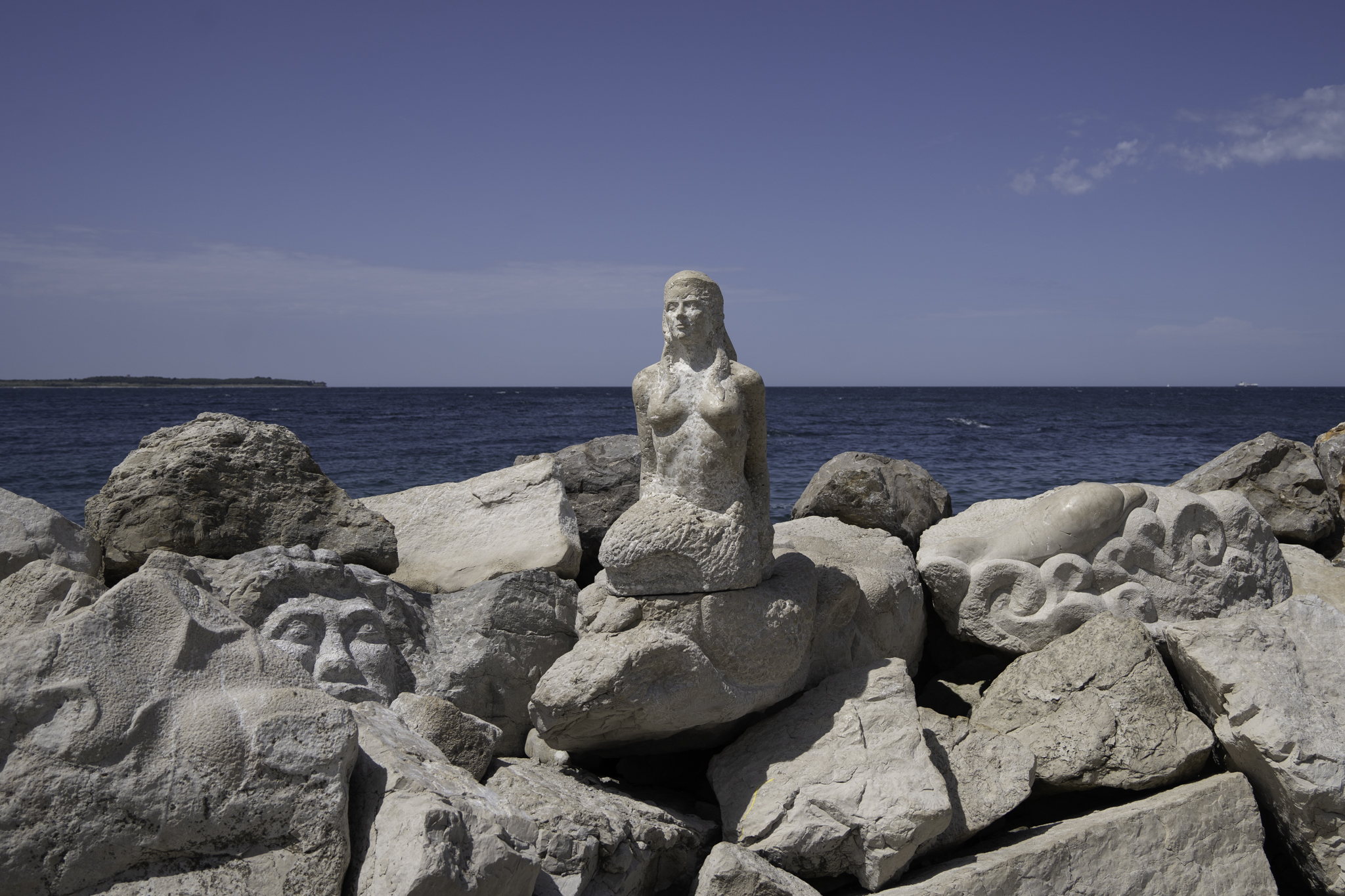It was big enough to keep us occupied for a few hours, but small enough that we could easily say goodbye once the heat of the day proved too much and the air-conditioning of our rental car called us back. We did the usual things one does in a coastal town: we walked the streets, bought coffee and lunch, ice cream and souvenirs, saw the iconic mermaid statue, walked up to the highest point (the church), sat in the pews for a few moments to escape the sun, took some pictures of the town square below, and then went on our way. A charming place to spend a few hours.